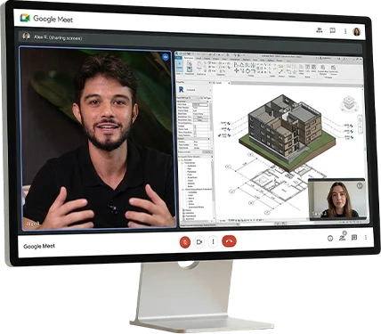 Realizamos uma sessão de 1 hora onde trabalhamos suas dúvidas diretamente dentro do Revit, com orientação prática e direcionamento técnico.